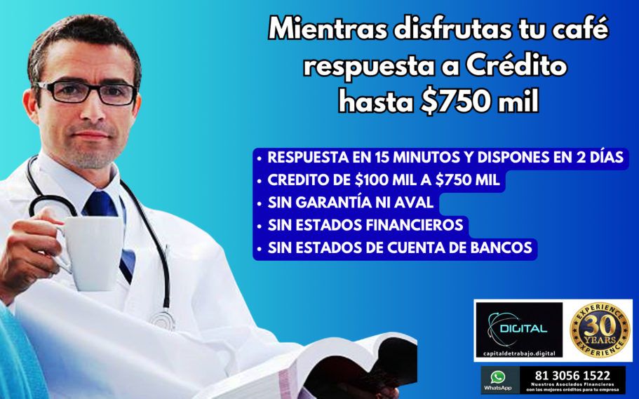Crédito desde $100,000 plazo de 36 meses y sin garantía ni aval.